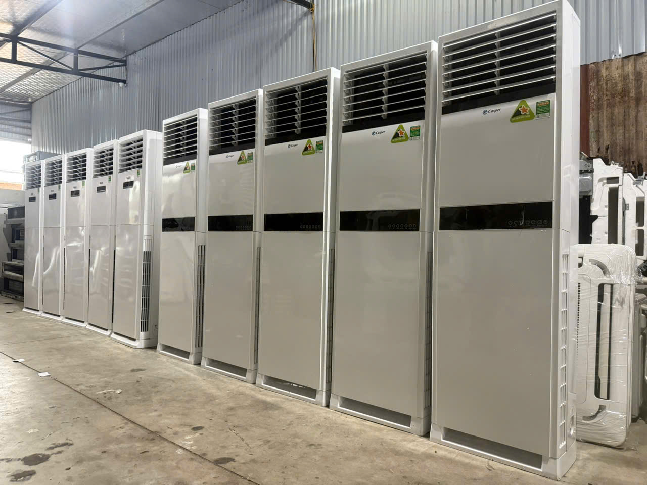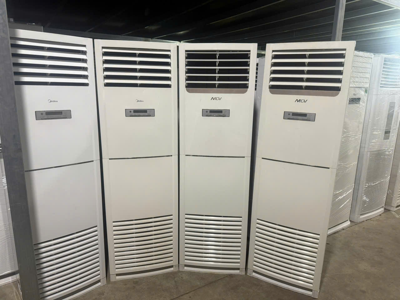 Chúng tôi không phải là đơn vị trung gian đi thuê lại máy. Tại kho hàng Tổ 8 – Huyền Kỳ – Hà Đông, chúng tôi luôn sẵn có hơn 400 bộ máy điều hòa công suất lớn từ 5HP, 10HP đến 20HP. Việc làm chủ thiết bị giúp chúng tôi: